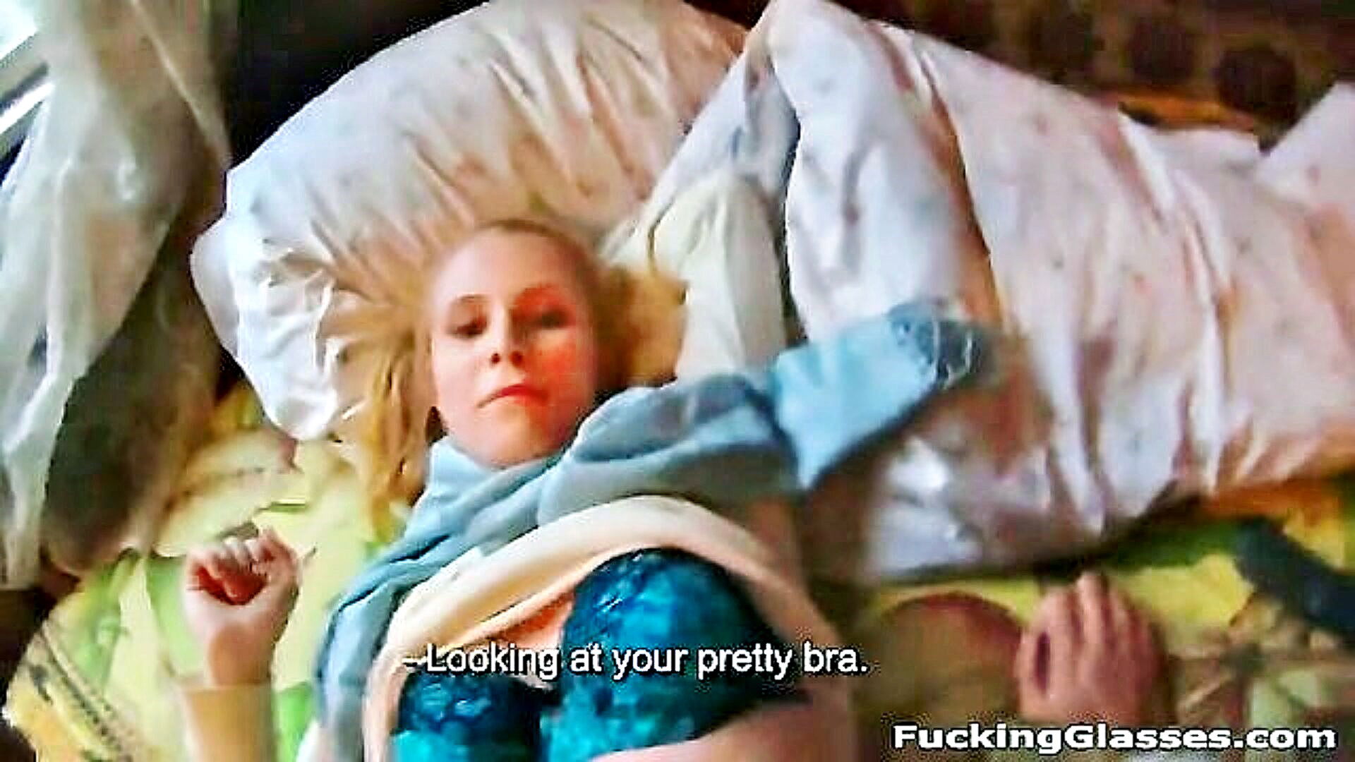 teen skinny blonde gets facial while indulging in hot close up action
