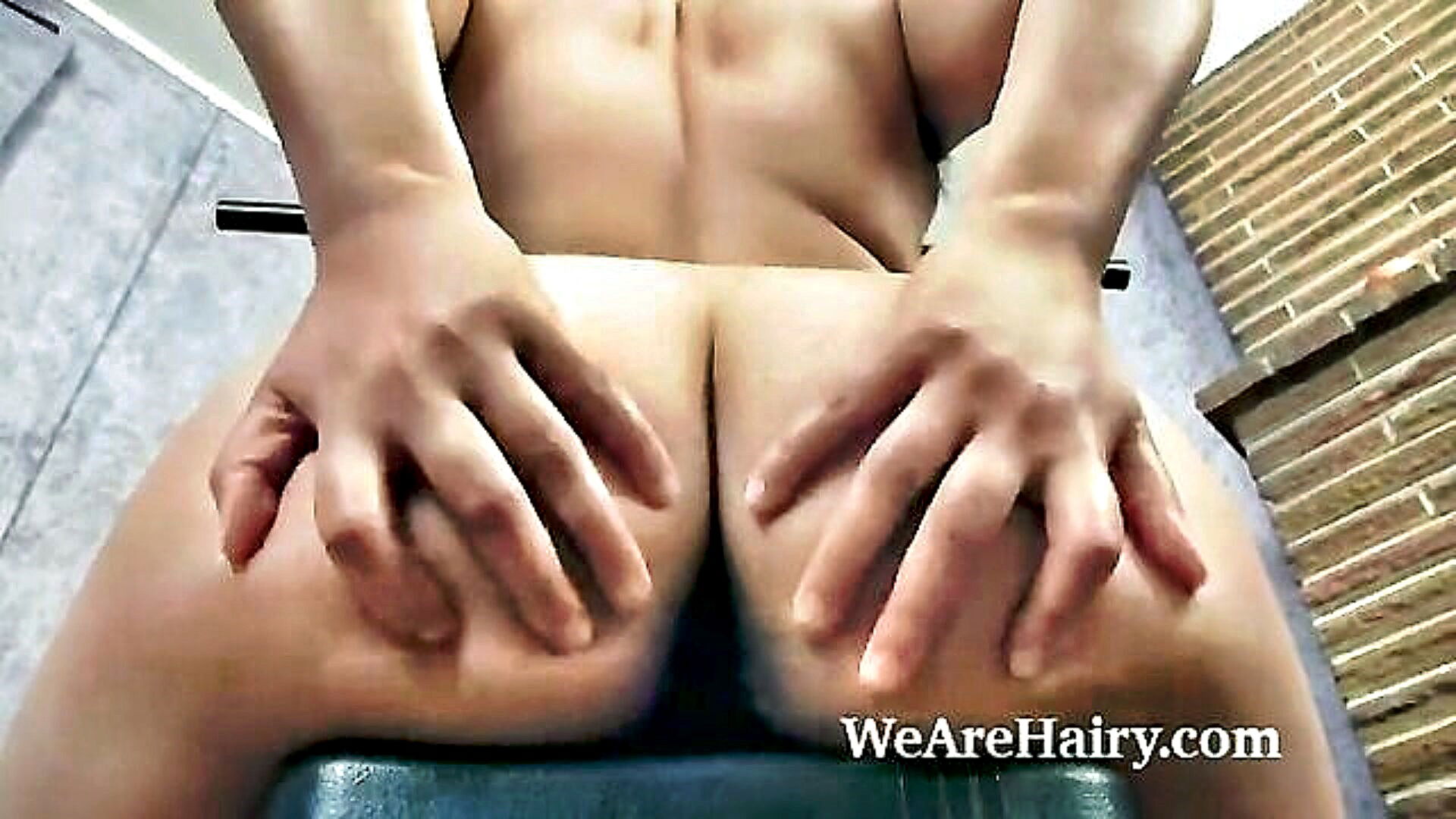 busty lou takes pleasure in showering and showcasing her hairy body