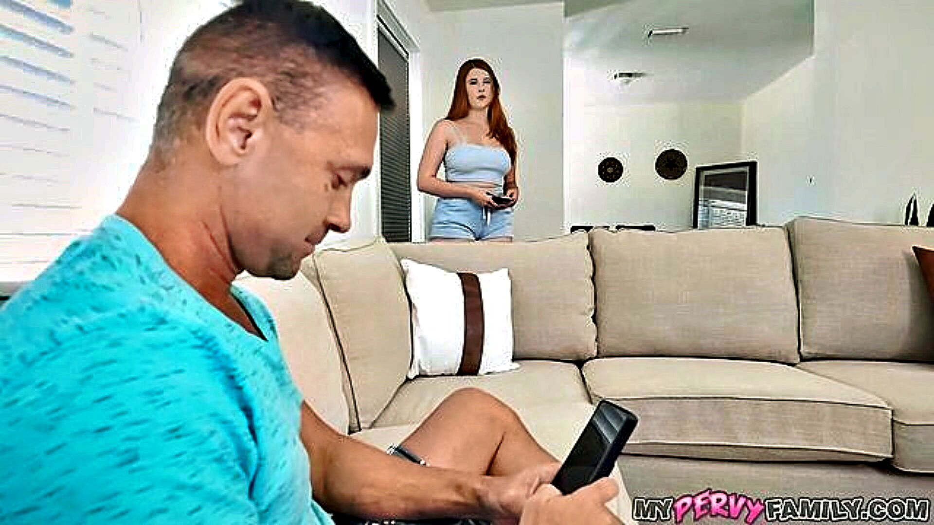 amateur neighbor with big breasts gets horny and gives handjob