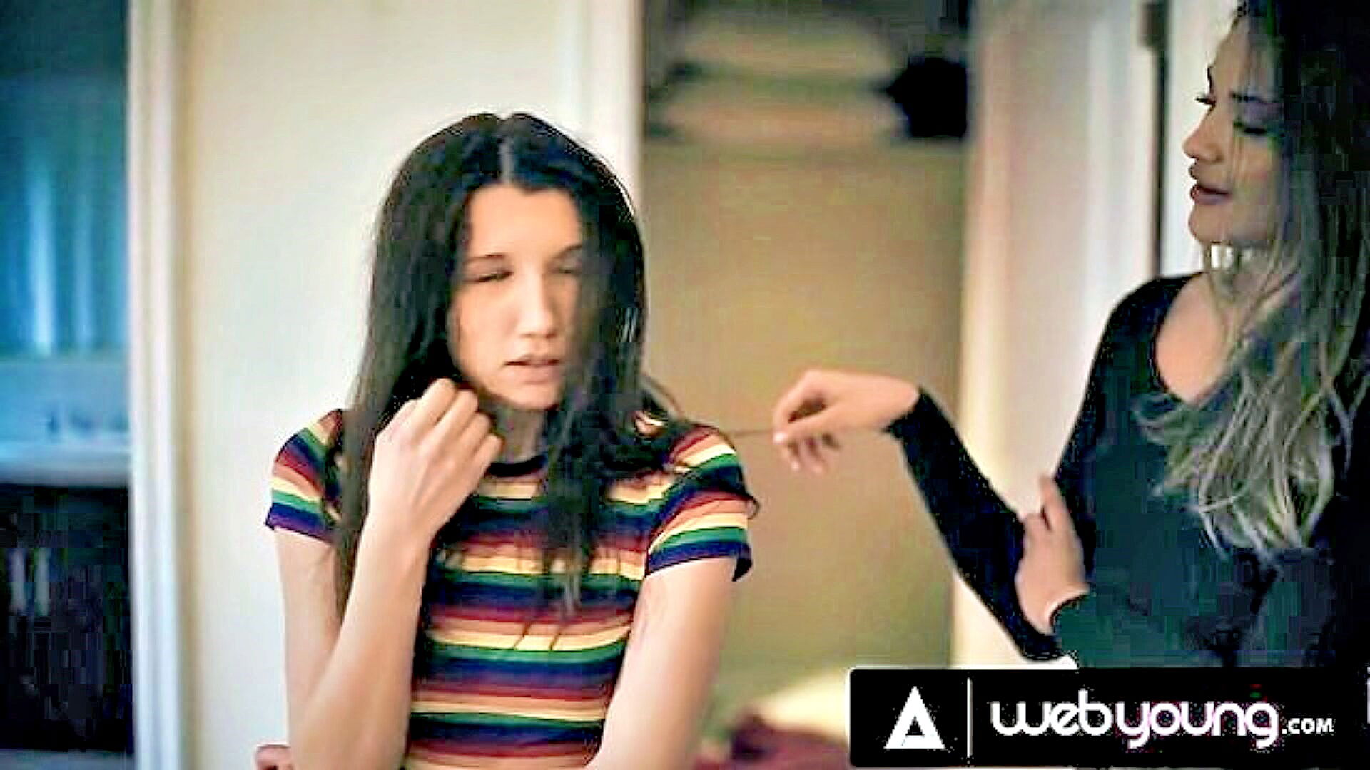 russian babe seduces girlfriend with strap on for hairless pussy ride