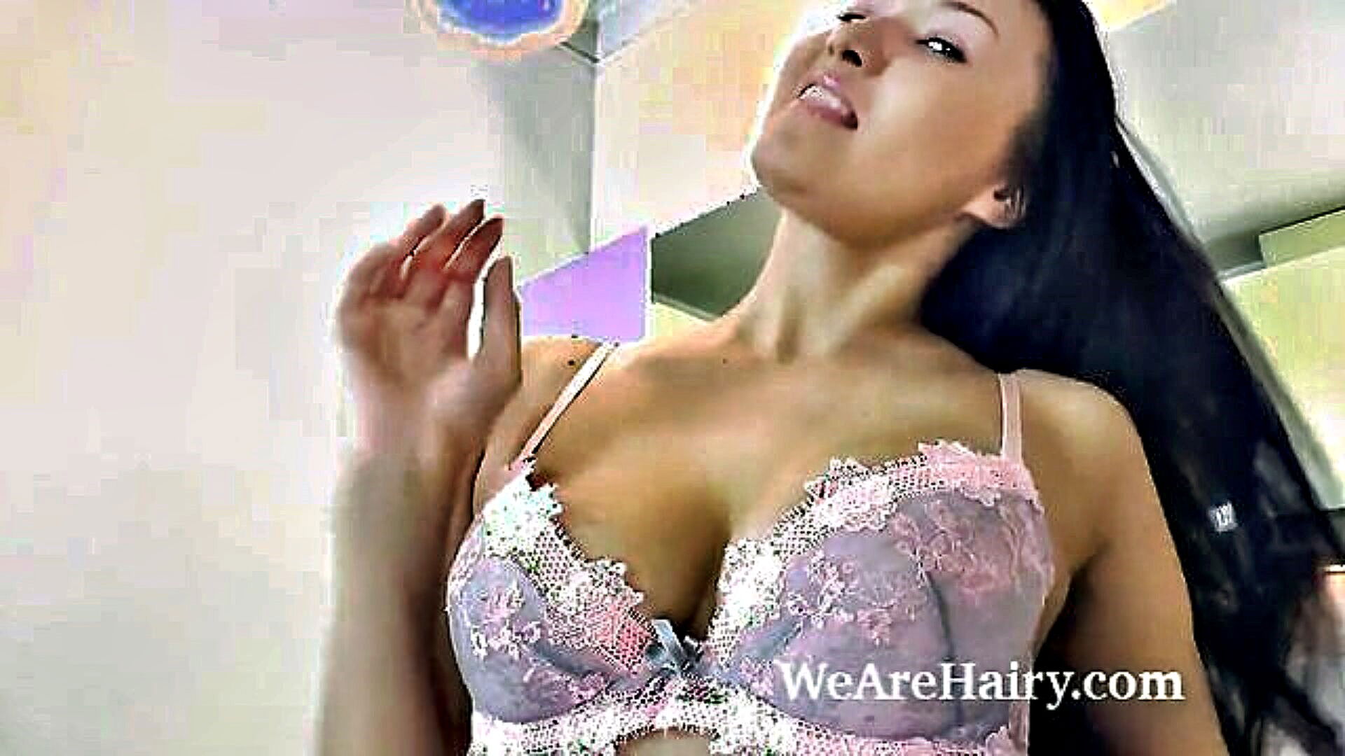 voluptuous mature woman ejaculates on a large sex toy in the kitchen