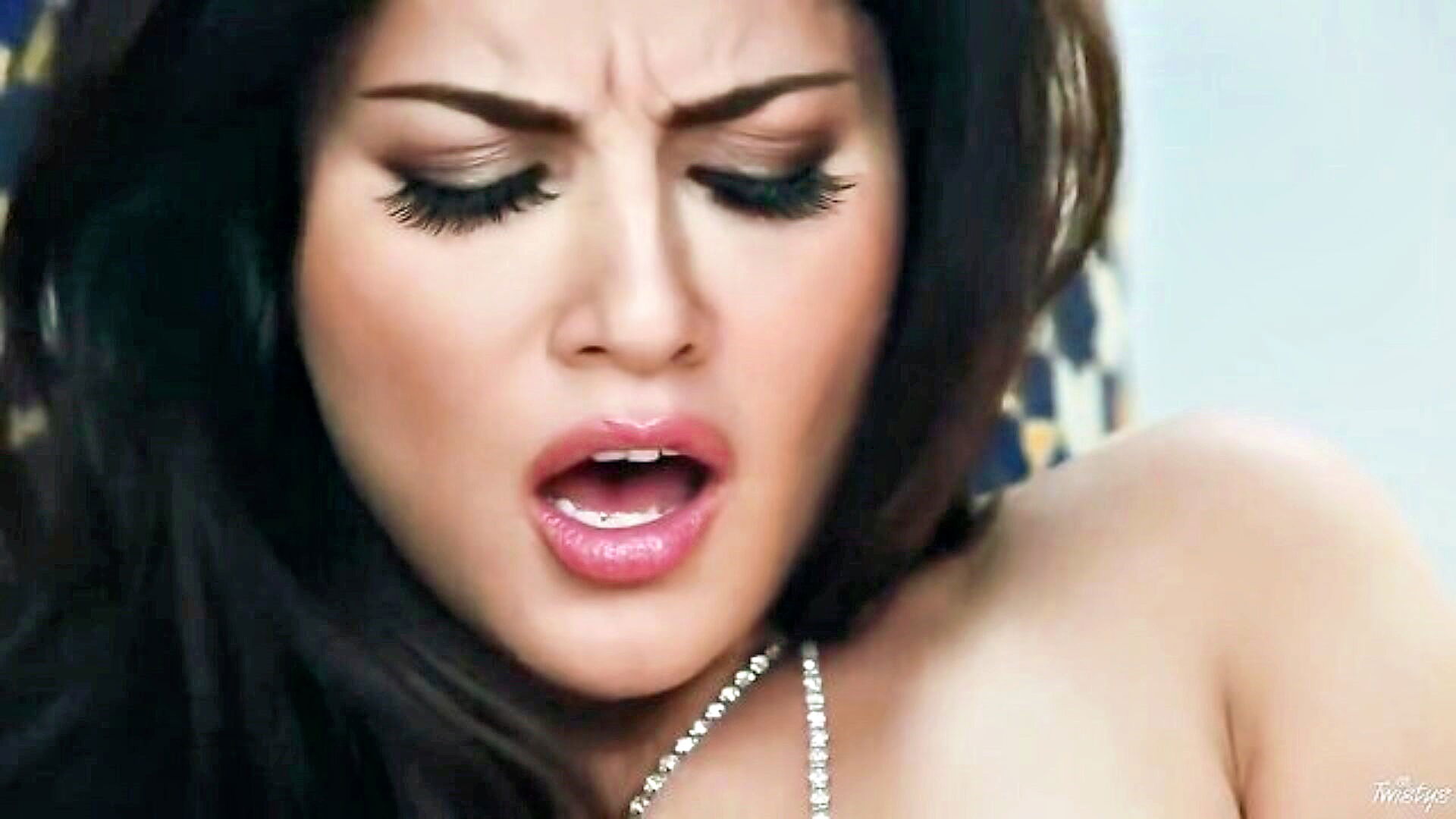 sunny leone enjoys double penetration and receives a cumshot on her large breasts