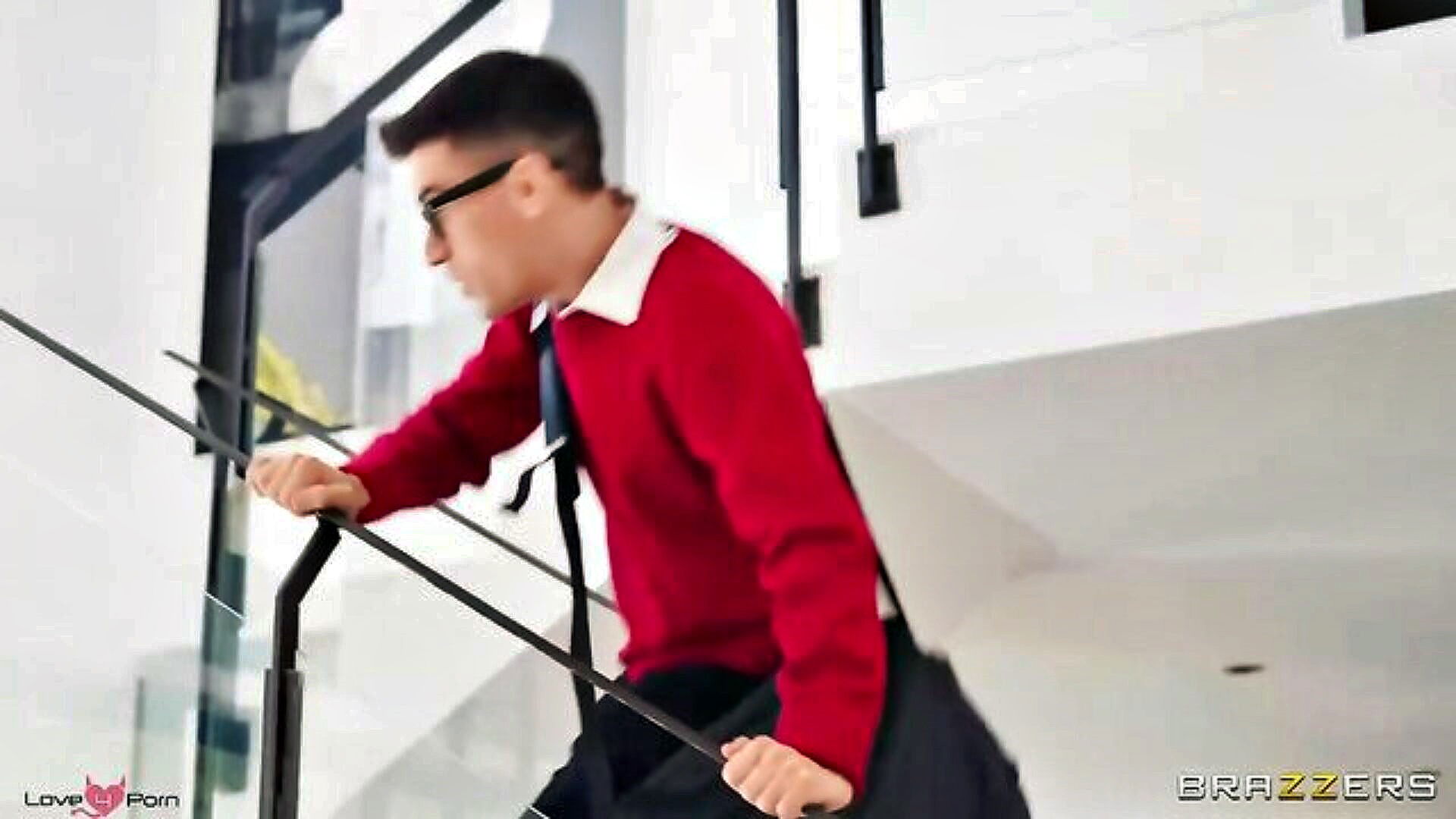 beautiful woman with great assets has a threesome with two lucky men