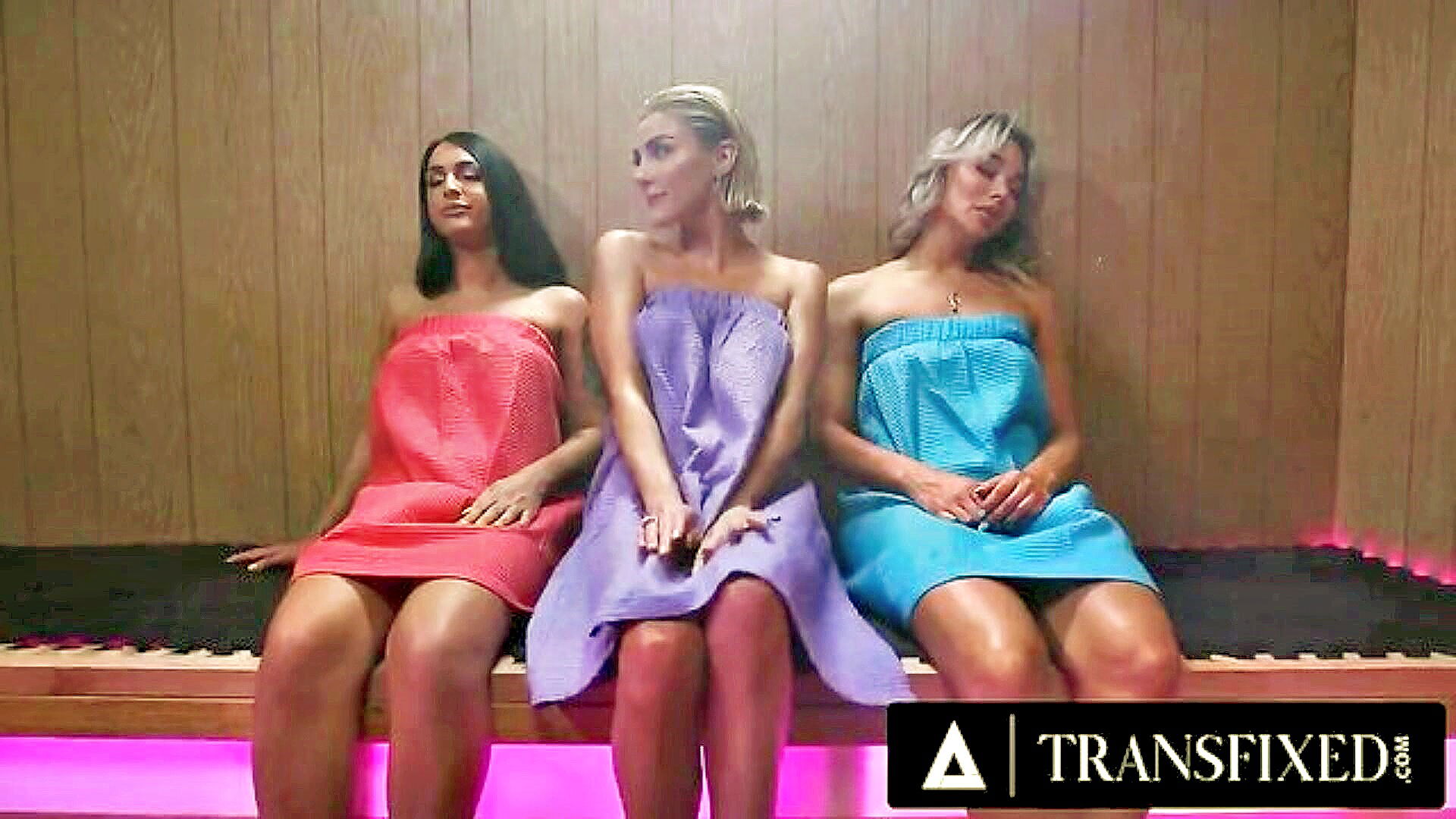 kenzie anne seduces a man and dominates him in the sauna with her big assets