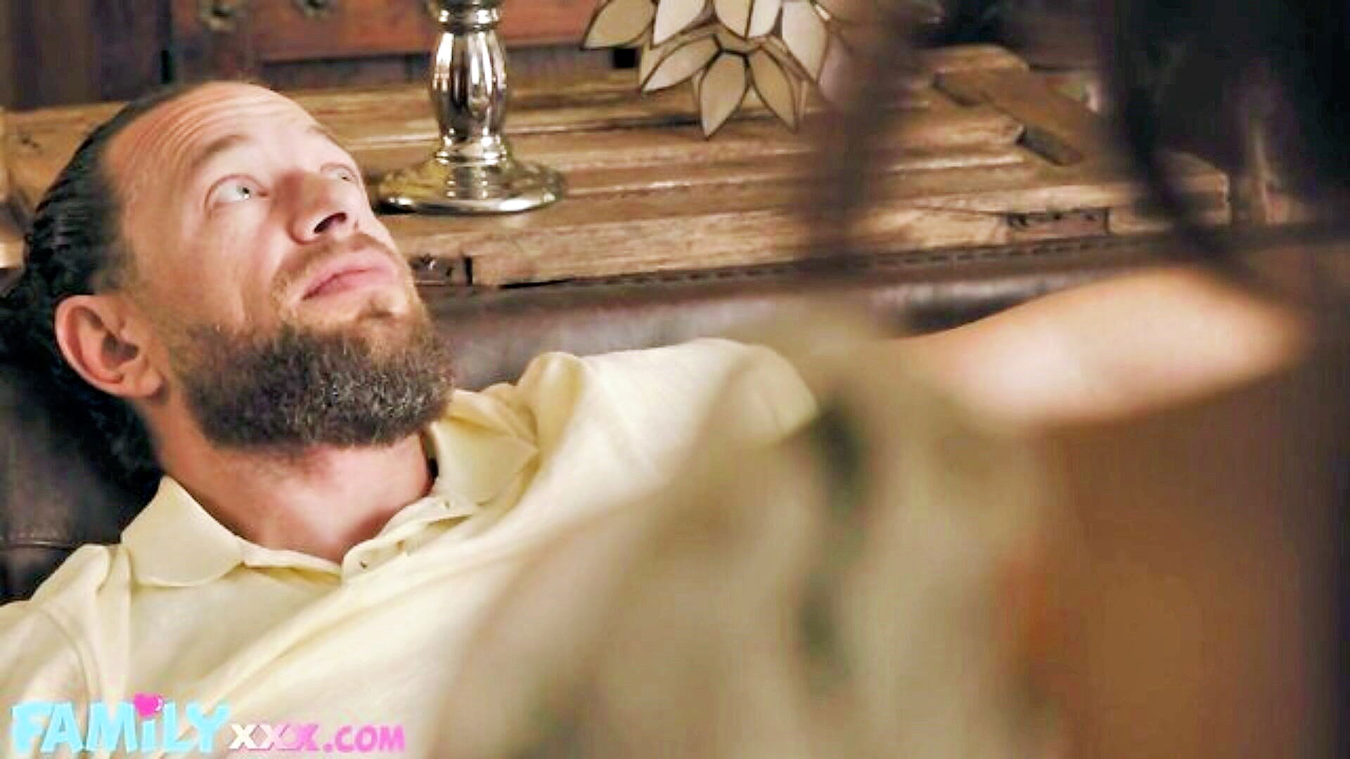 stepfather gives hairy brunette a facial