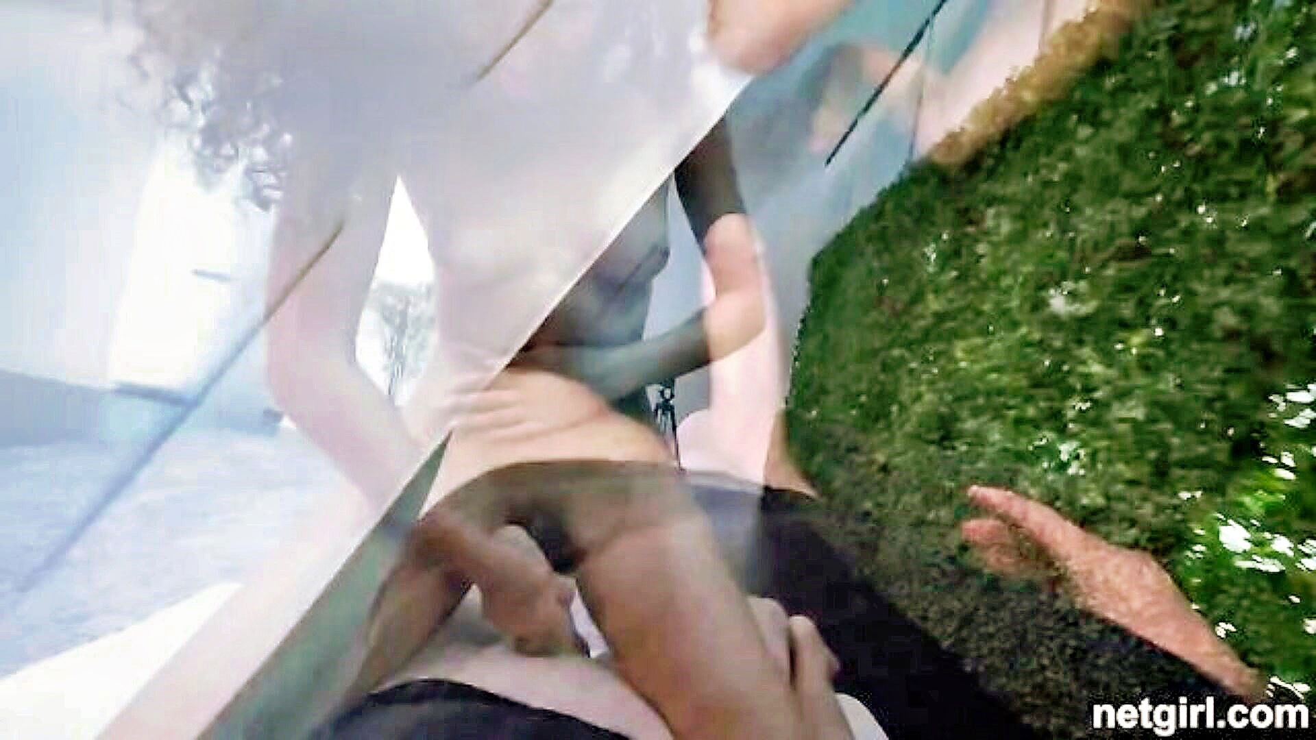 fair haired shay sights and brunette laura bentley alternate in pleasuring their bare folds through oral and digital stimulation on the matrimonial bed all while apollo banks looks on