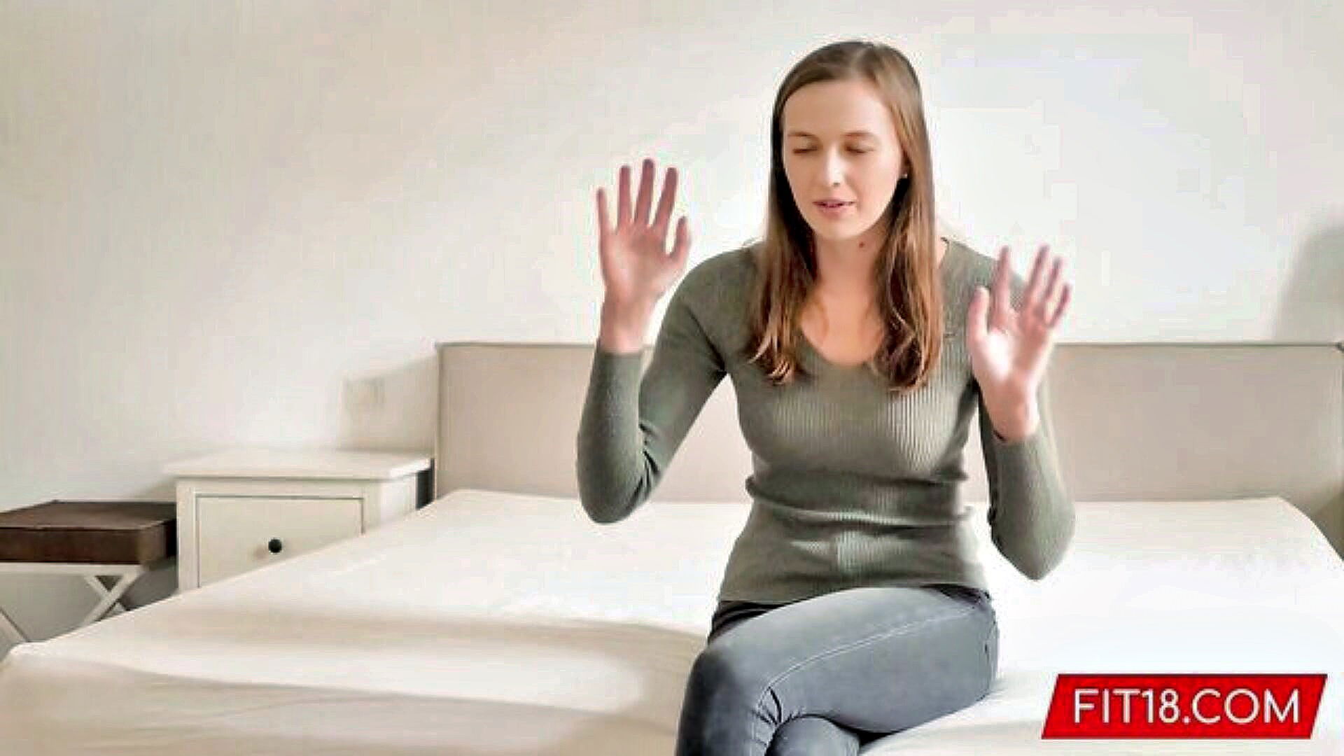 brunette suffers from amazing big natural tits enjoys sex with a deep emotional experience