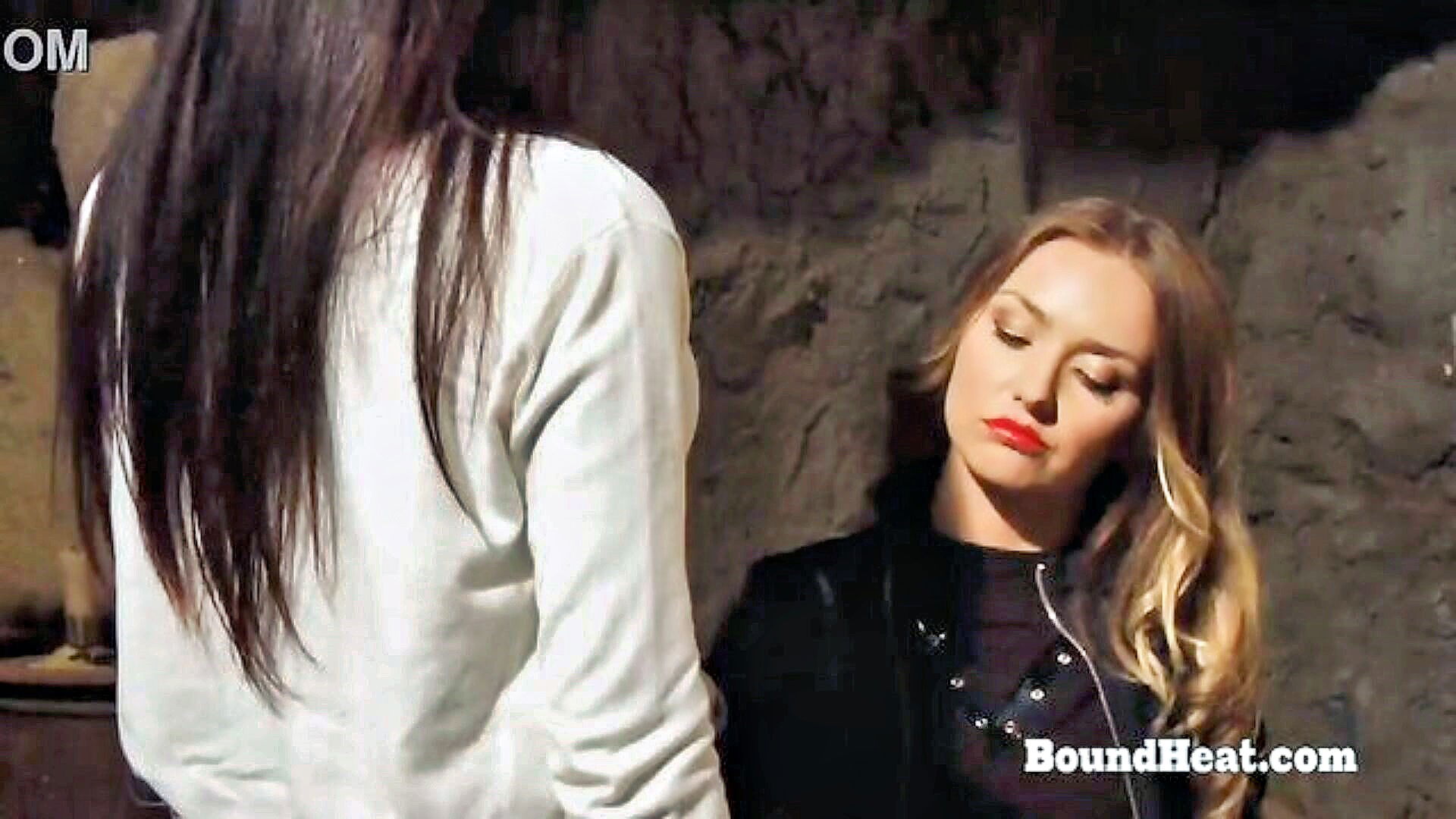 dayna vendetta a lesbian villain uses a strapon to dominate female superhero siri in a bondage scene