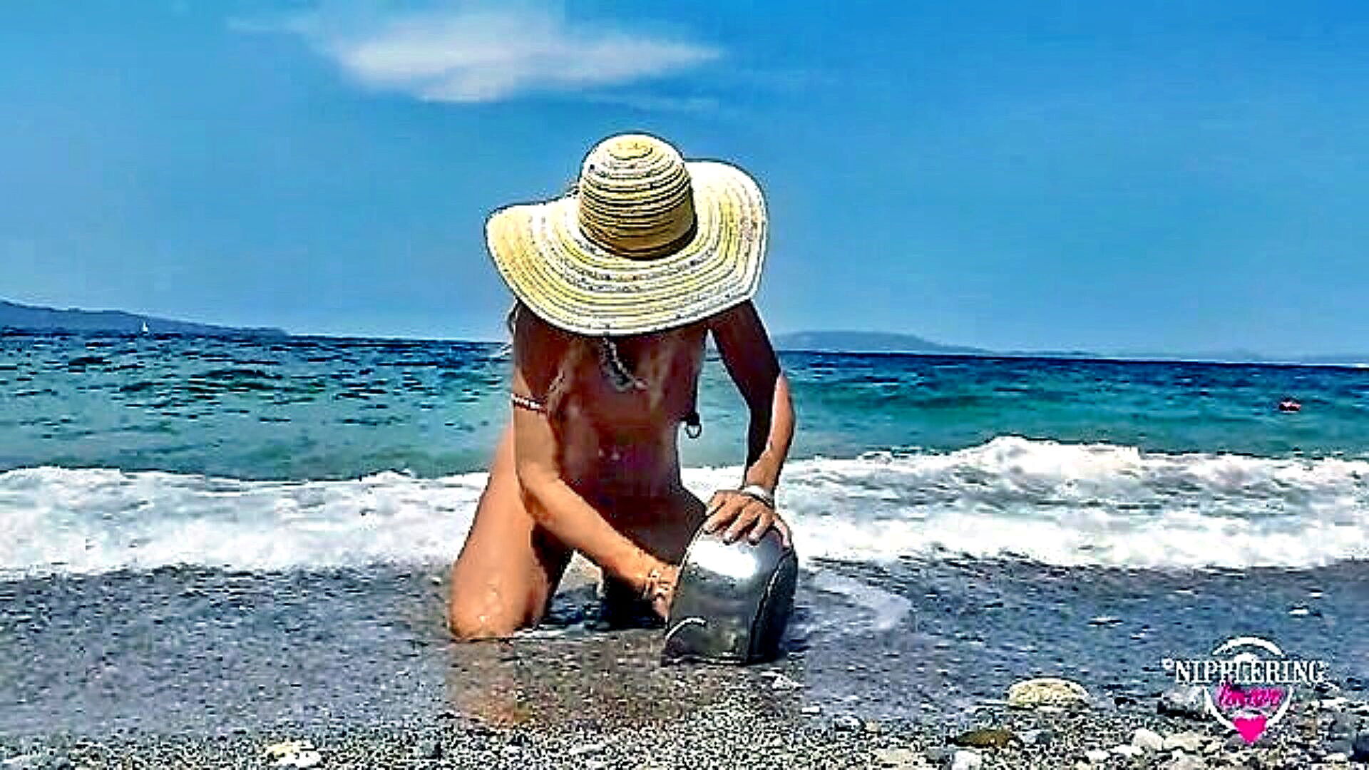 amateur woman sunbathing in the nude on beach