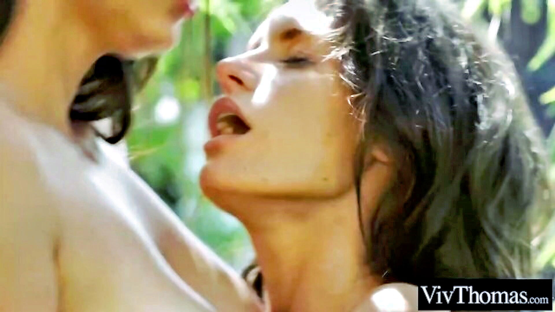 young brunette gives oral pleasure to her older partner on the daybed