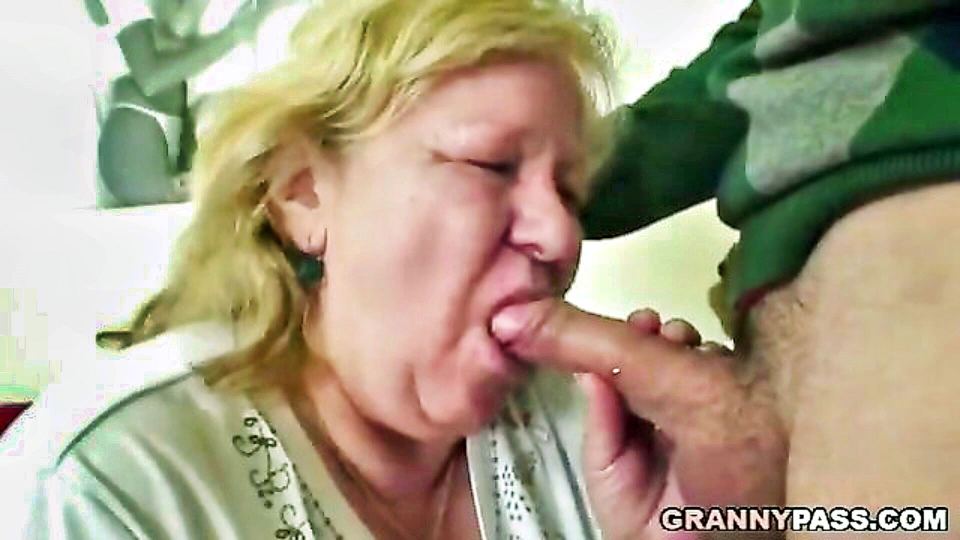 enjoy a plump older woman with large breasts giving blow jobs to two men at once and getting facial in return