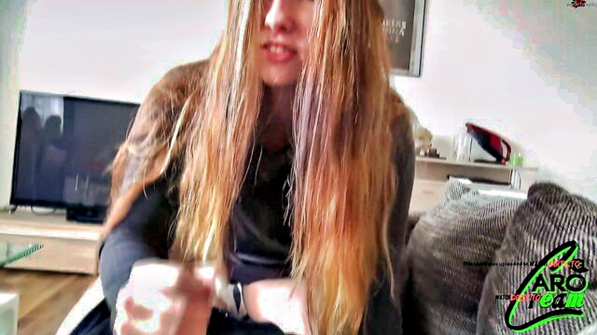 sirena sweet tattooed blonde gives a pov blowjob to her cock