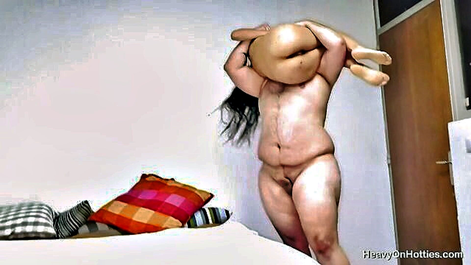 young brunette gives a blowjob to an older man in a hardcore video