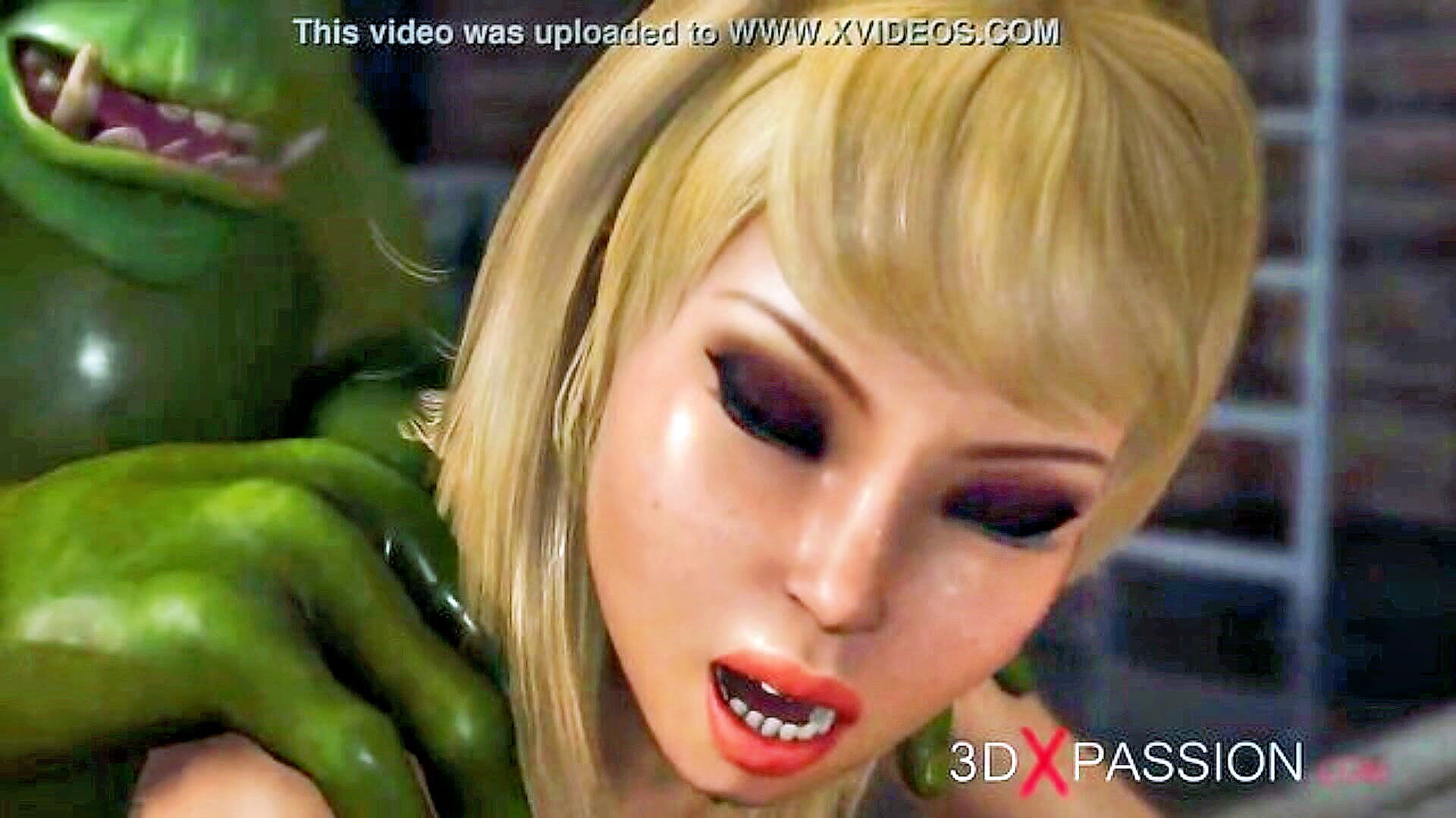 a beautiful hot fairy enjoys double penetration with two orcs in the night forest in this 3d video