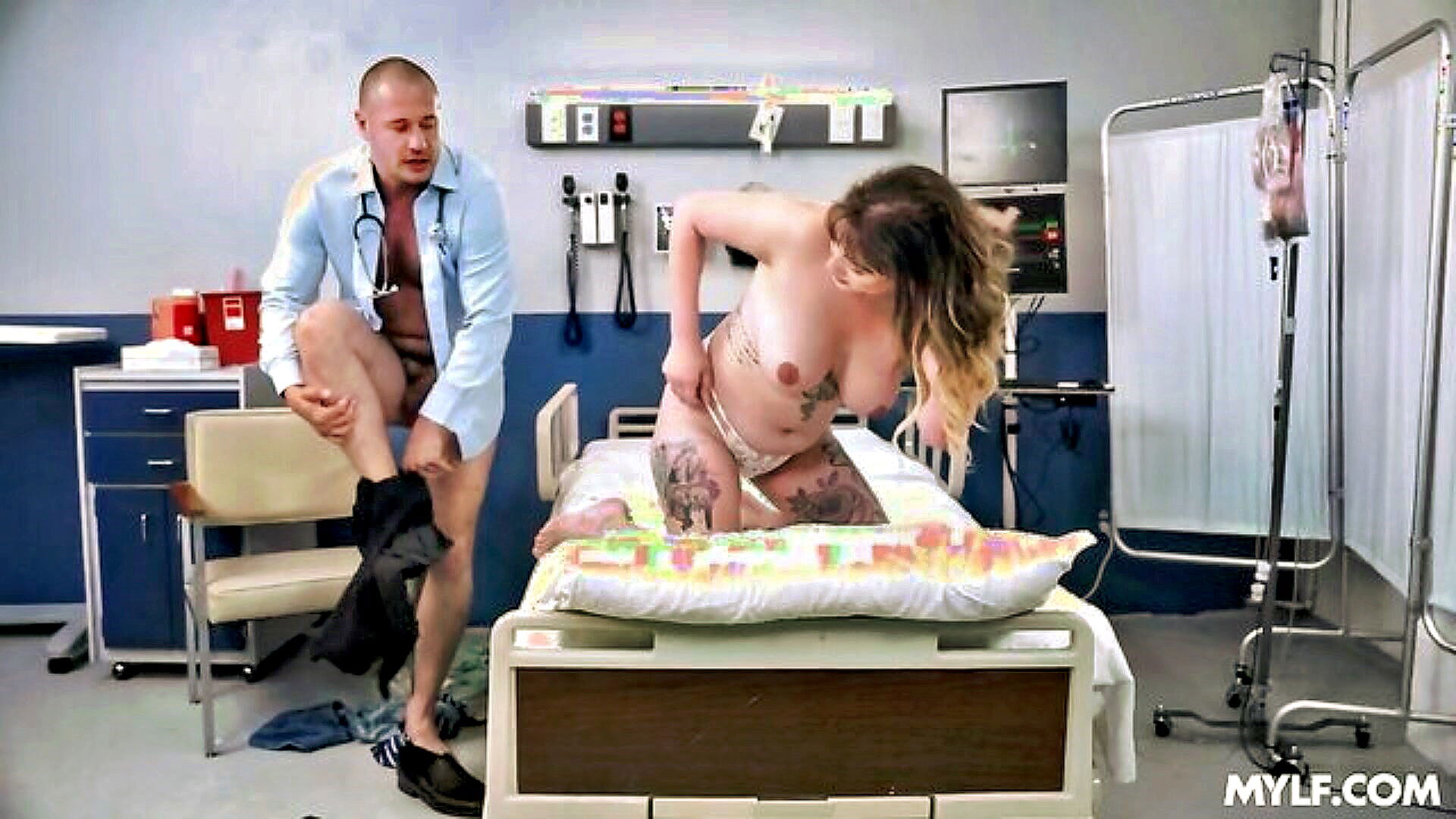 husband anxiously watches as his wife receives fertility treatment from a well endowed doctor leading to a steamy cheating encounter featuring mature actress riley nixon