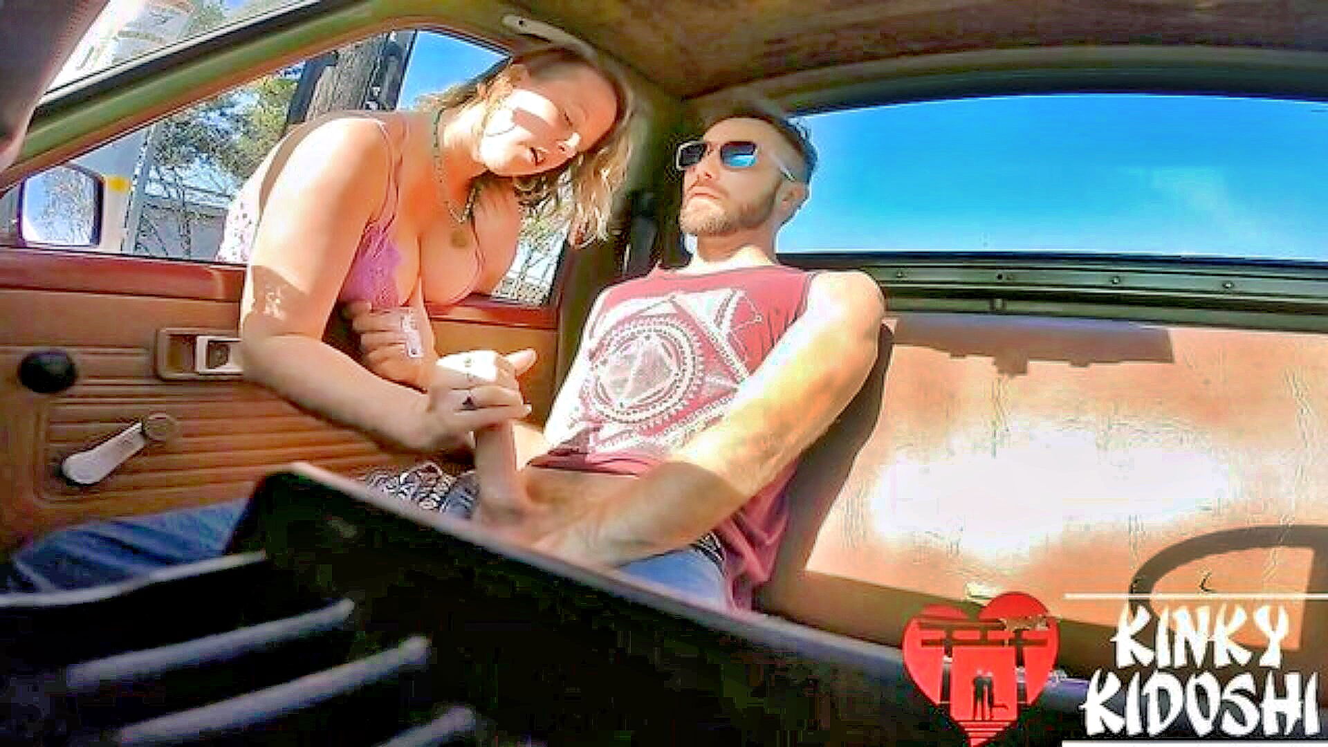 big boobs milf flashes and gives a blow job in a car