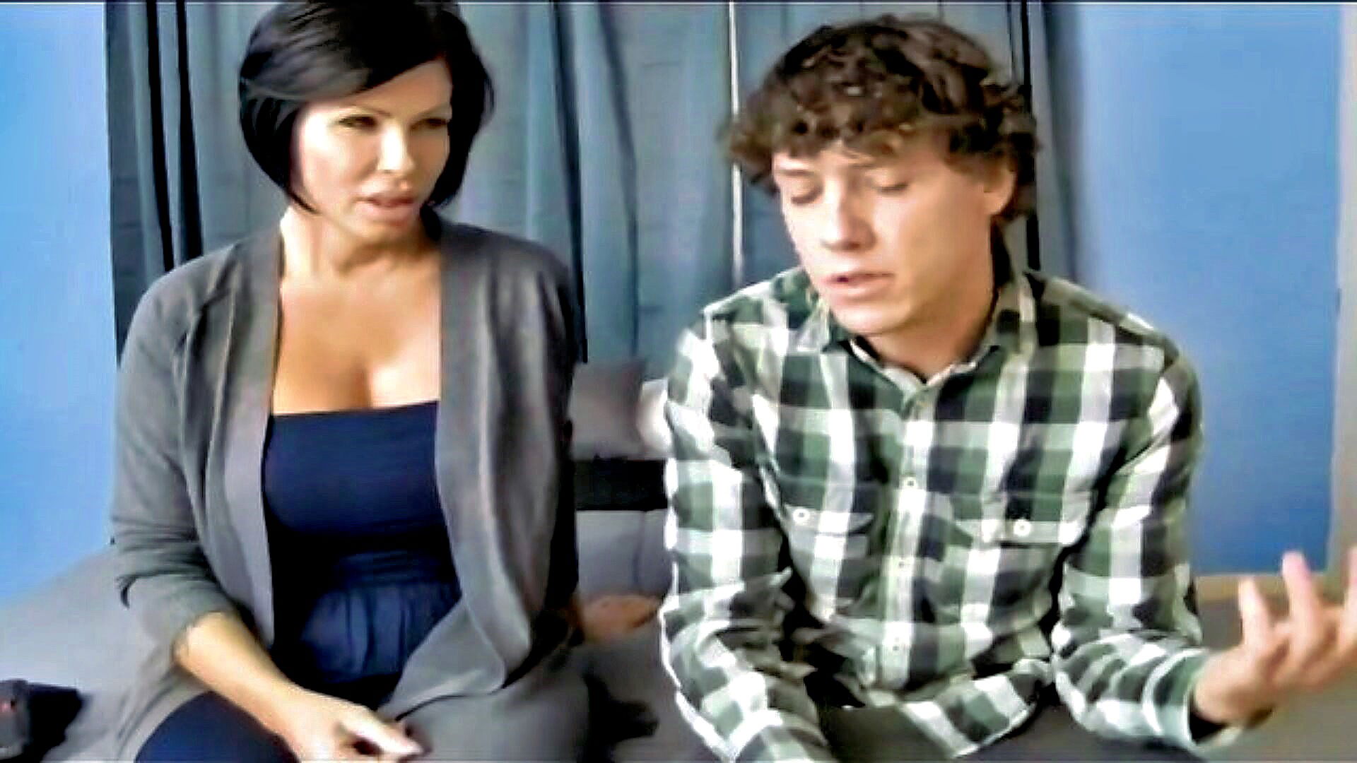 stepmom with large breasts indulges in sexual relations with her nerdy stepson while performing oral sex featuring mature and milf content as well as elements of hardcore and old and young themes