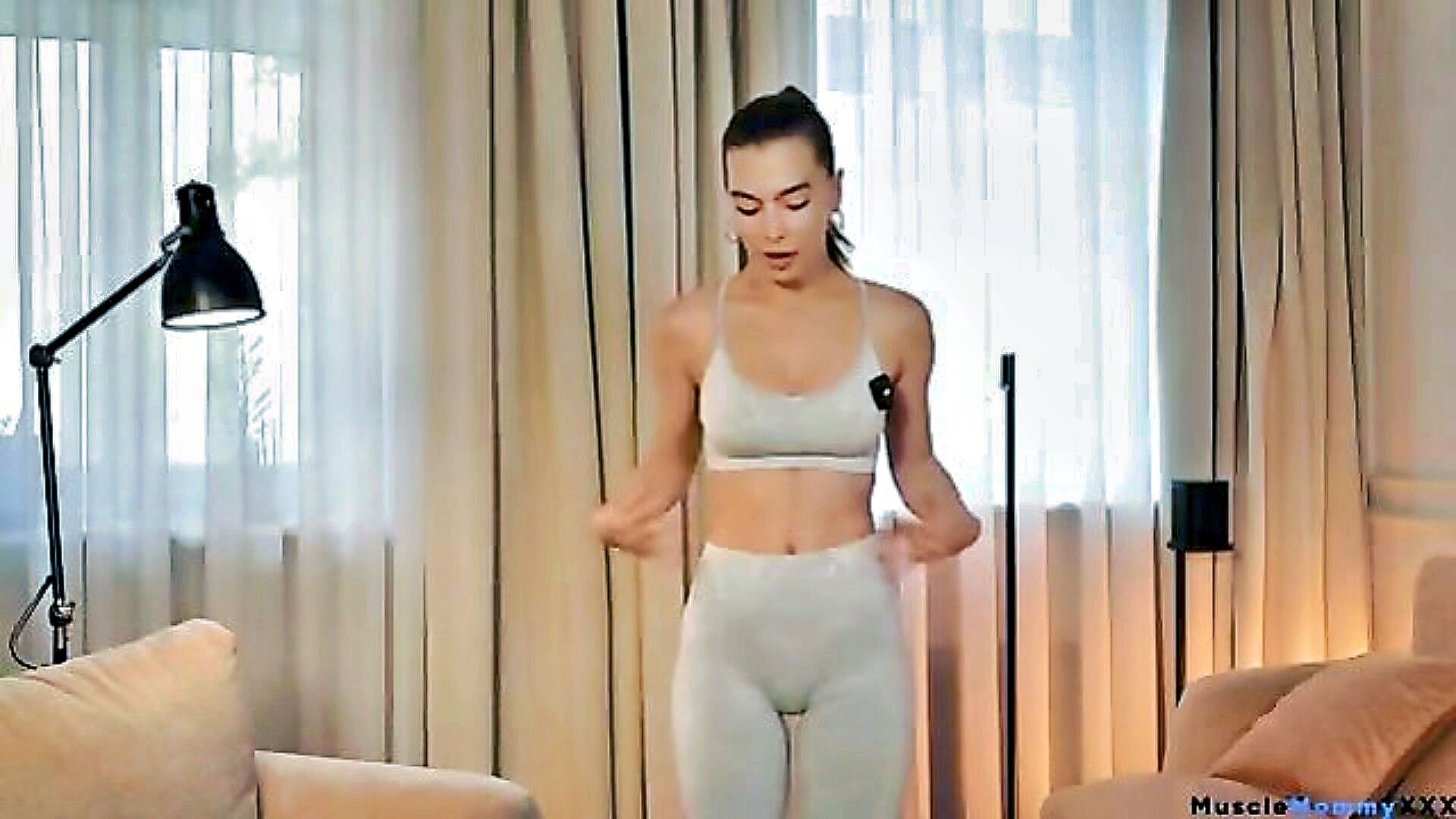 dainty white pants and semi transparent top… did you notice my revealed toe of camel color slim outdoor yoga pants private public flashing semi visible tr