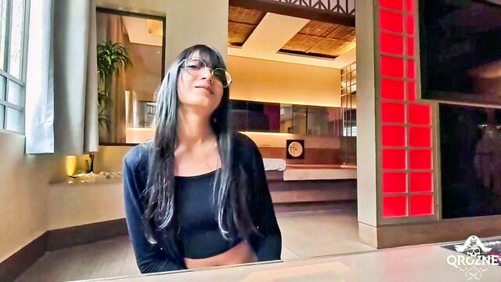 brunette hottie gives a sloppy blowjob and gets fucked hard