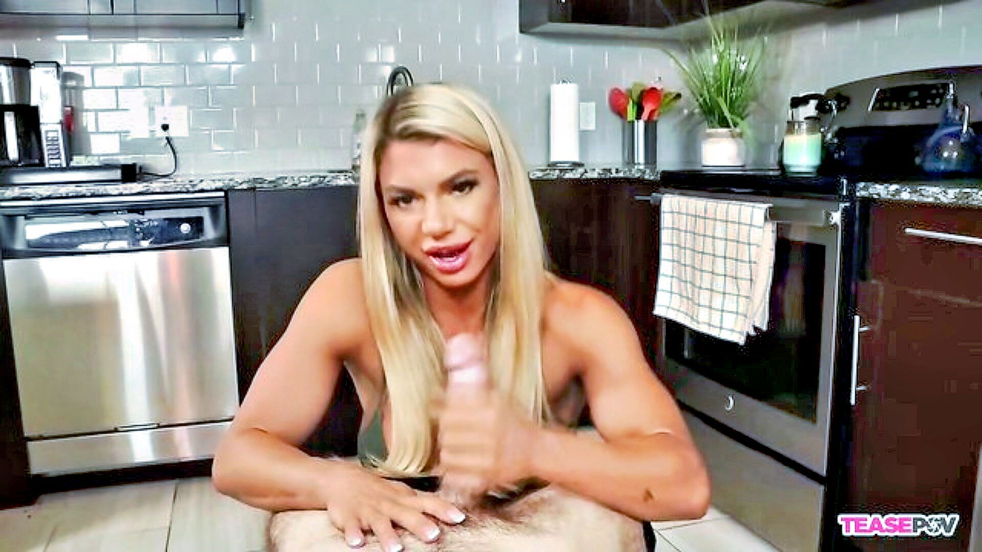 fitness model gives a handjob to a well endowed guy who refuses to climax