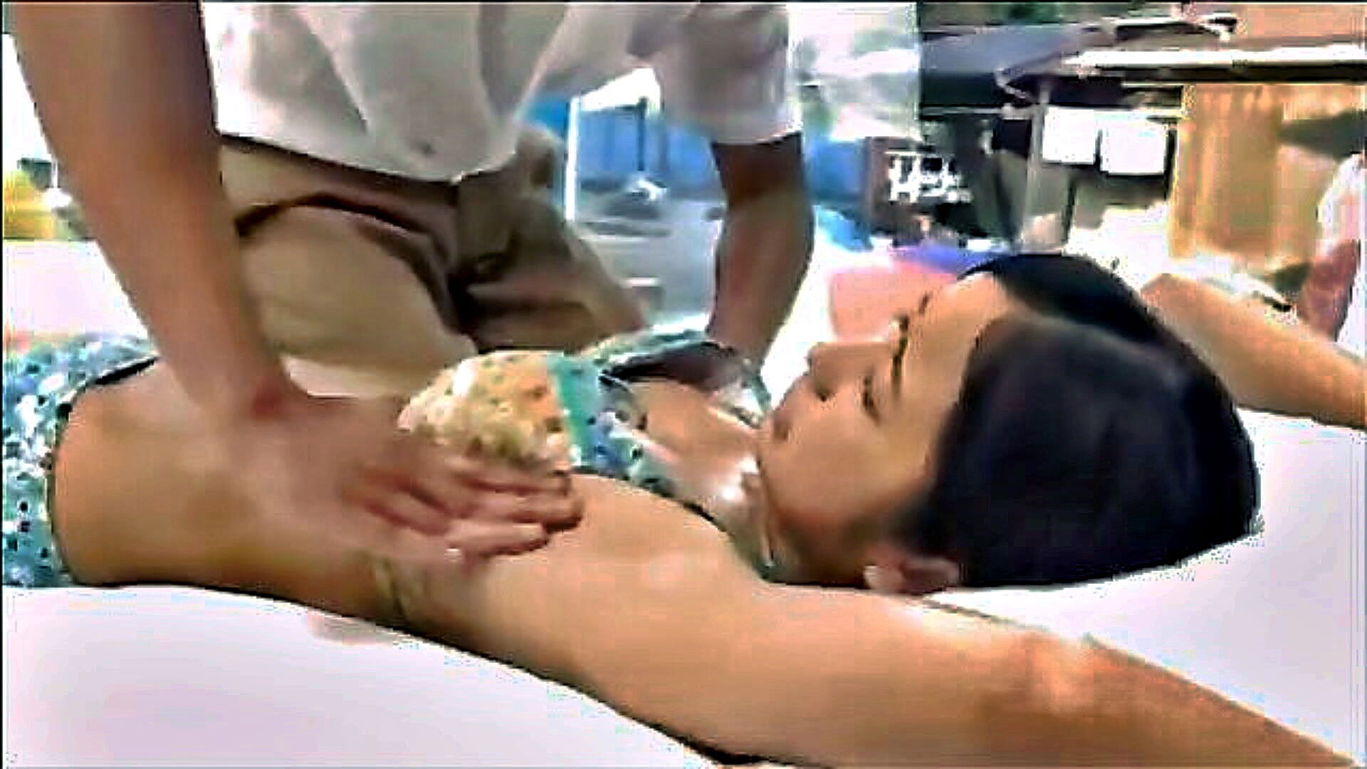 teens indulge in sensual massage in a glass room
