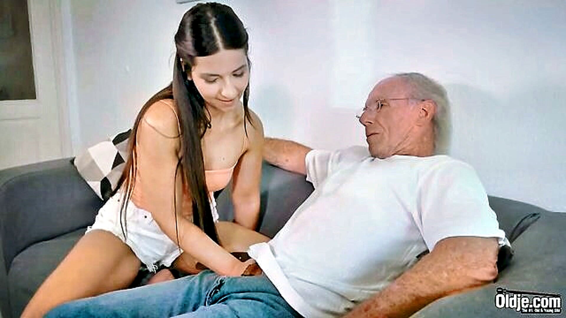 18 year old olivia nices big natural boobs bounce as she gets a rough fuck by her grandfather in the bedroom
