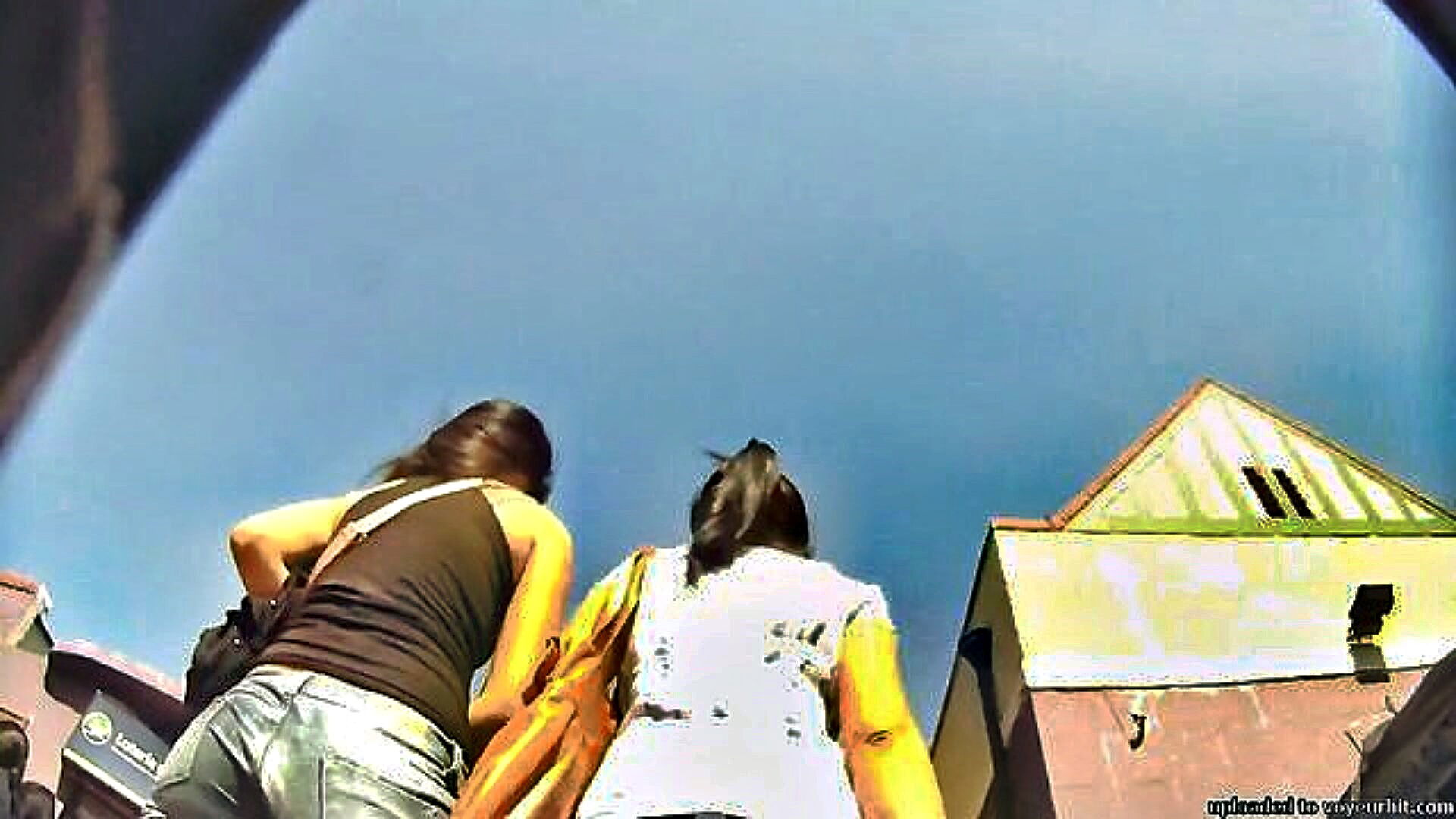amateur brunette in short skirt and white panties at the mall