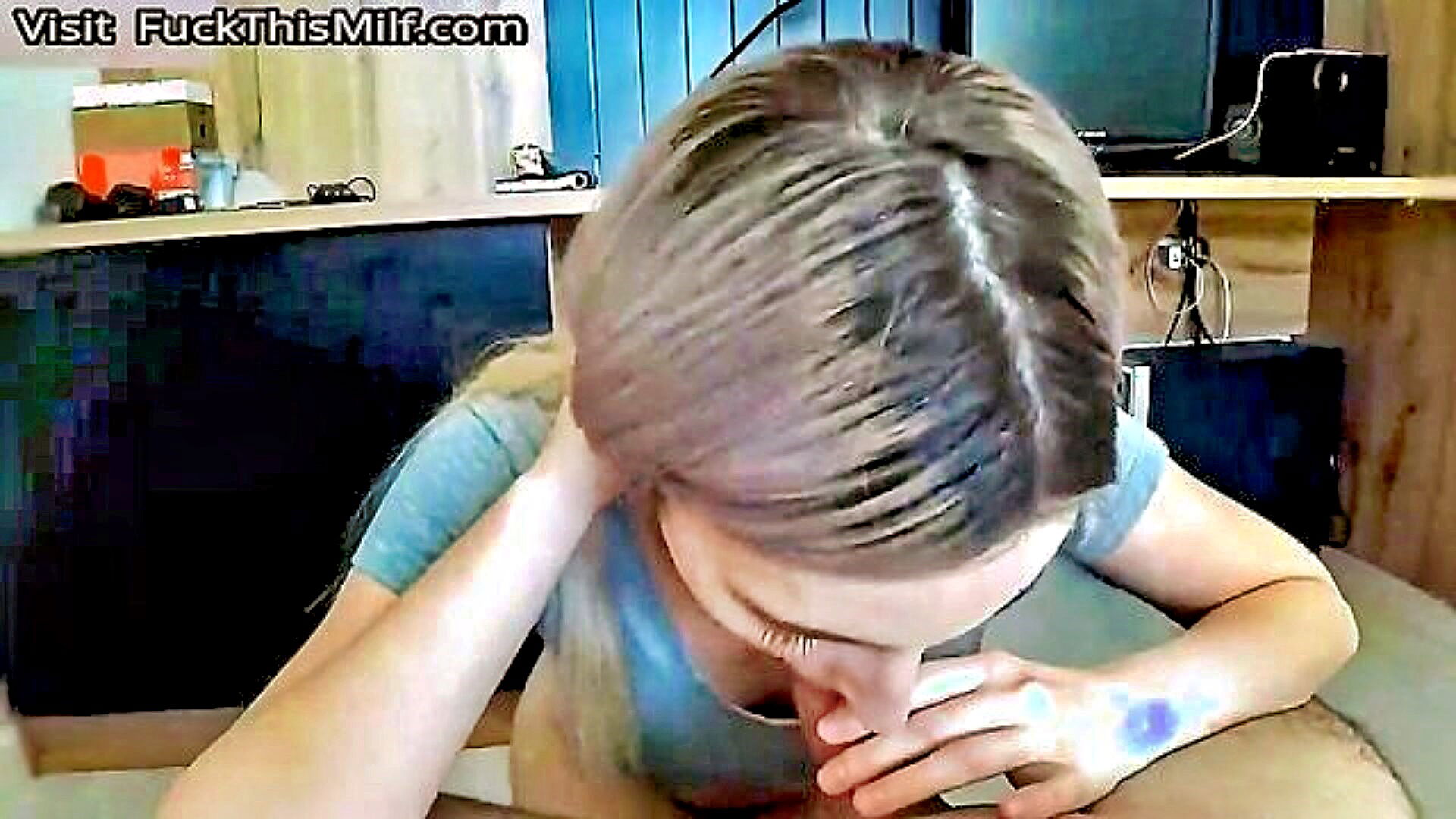 blonde stepsister surprises me with a standing dick and gives me a facial cum shot