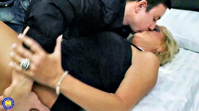 old blonde spreads legs