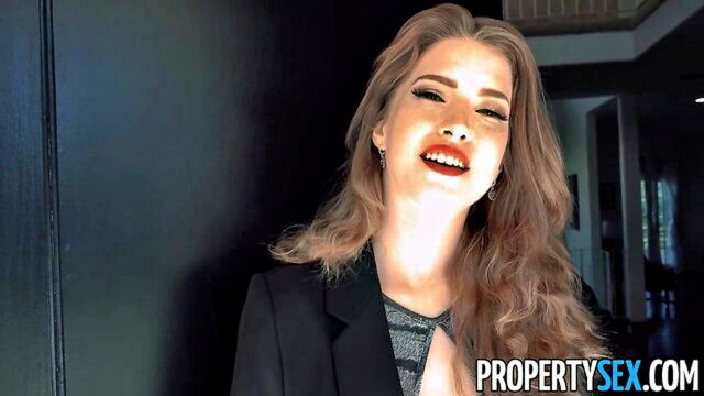 beautiful agent with large bosom completes the deal with a blowjob and facial